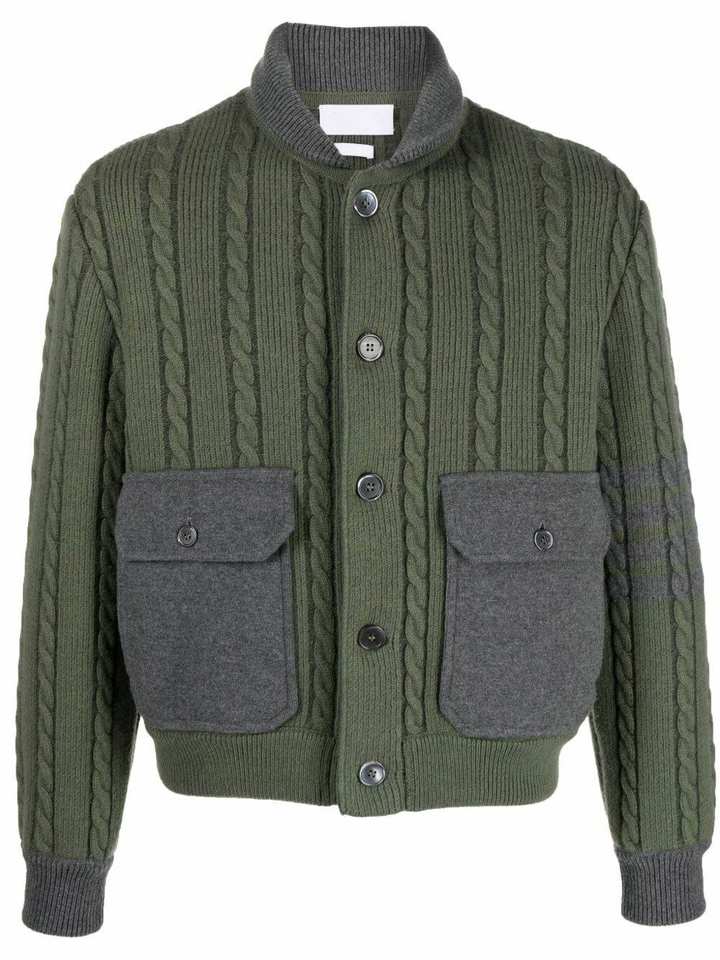 Suéter de invierno personalizado con botón frontal suelto, bloque de color, cuello abatible, cárdigan de invierno de punto para hombre