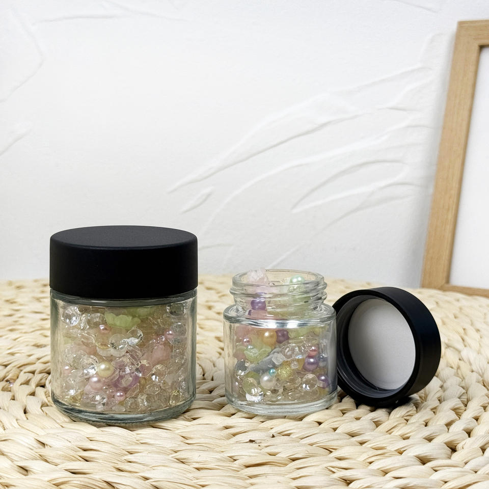 Personalizado de alta y fina calidad transparente 60ml para tarro de vidrio de flores secas con tapa CR