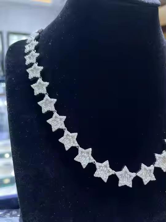 Joyería de diamantes cultivada en laboratorio redonda con eslabones cubanos de diamante completo de Hip Hop personalizada con cadena de oro blanco de 14K para hombres y mujeres
