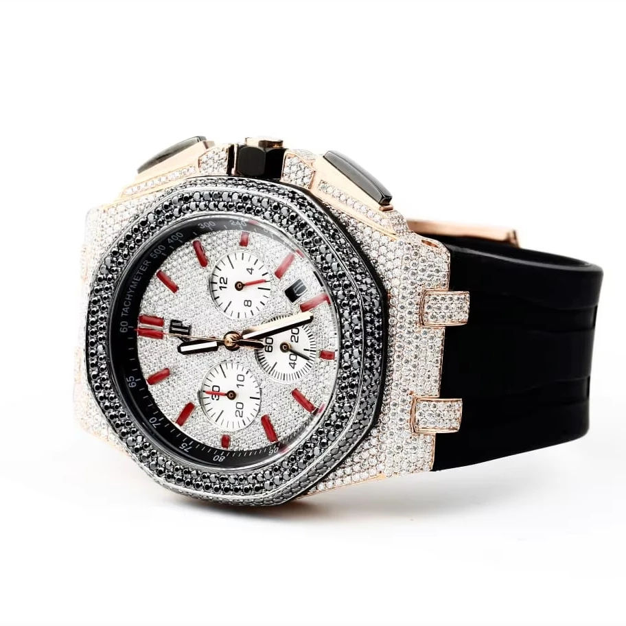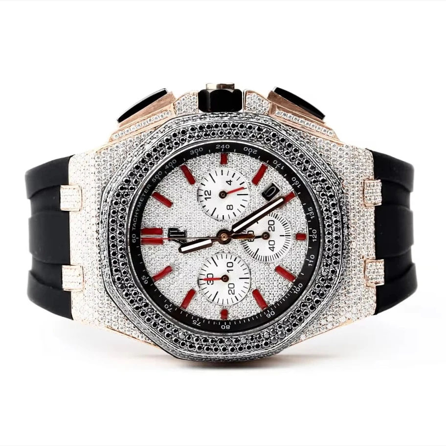 Reloj de Pulsera de Lujo con Bisel Completamente Engastado de Diamantes de Imitación, Estilo Hip Hop, Números Verdes, Precios de Fábrica, Joyería Estilo Rapero