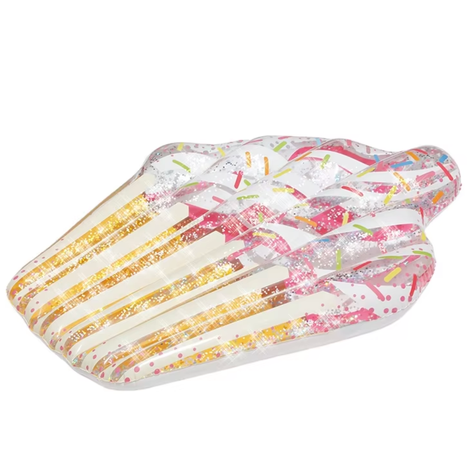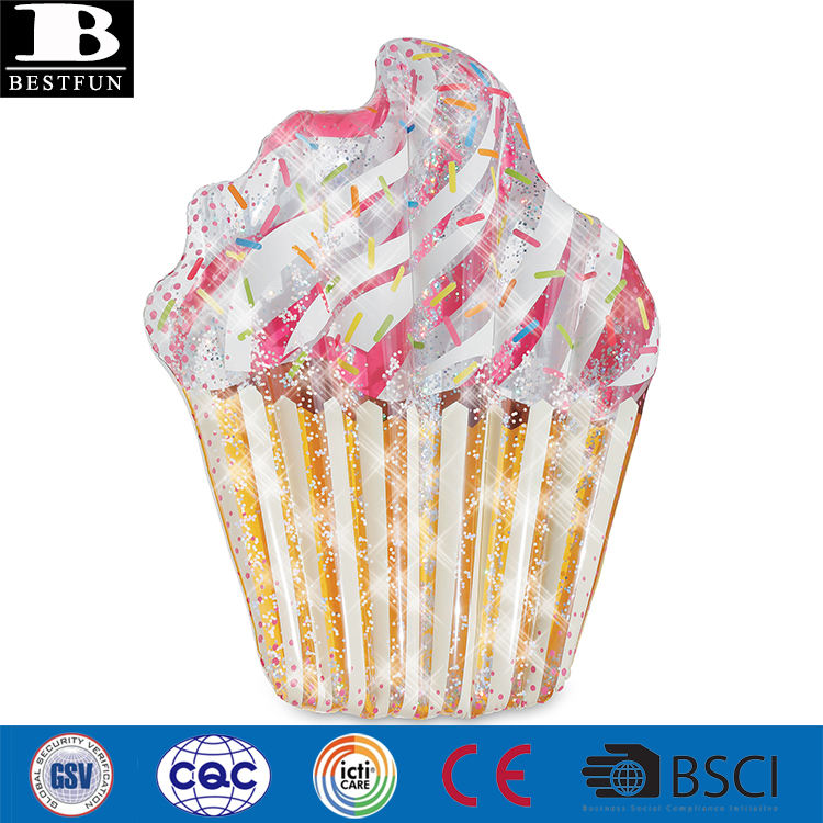 Personalizado inflable brillo Cupcake piscina flotador Durable PVC vinilo brillo agua natación colchón de aire equipo