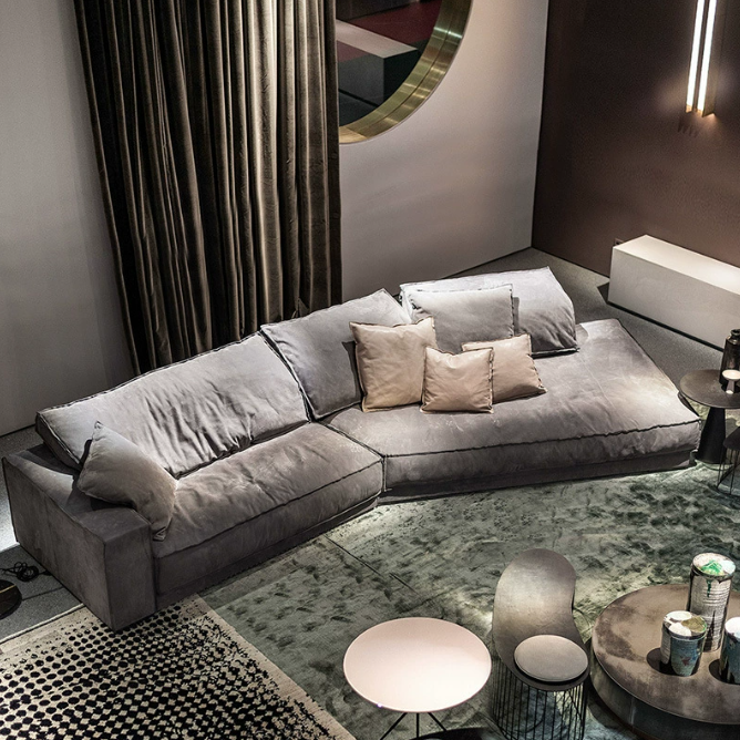 Juego de Sofás Cuadrados Personalizados de Estilo Italiano Moderno y Minimalista, en Cuero de Grano Completo Esmerilado, Ecológico, con Acero Inoxidable, para Hoteles Grandes