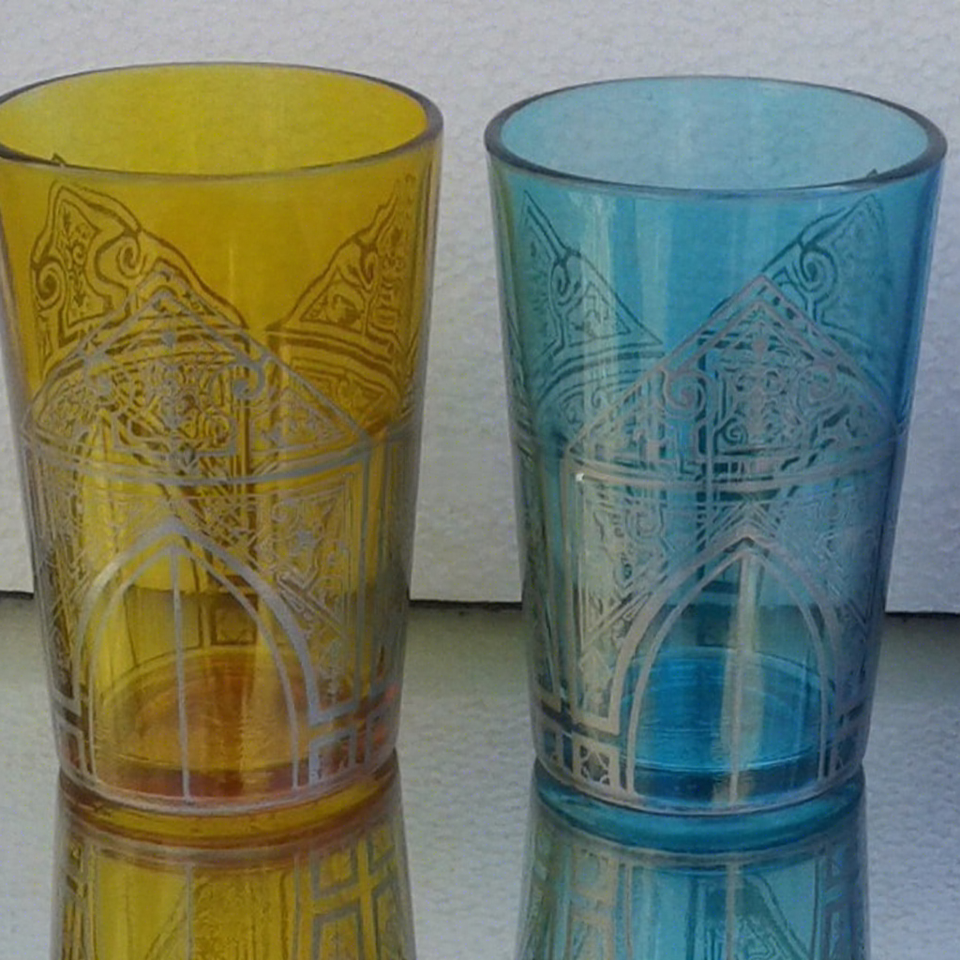 Juego de Té Estilo Marroquí Vintage JM INTERNATIONAL Personalizado, Tetera con Borde Dorado, Tazas Rosa, Verde y Azul, Modelo JM-2239 para Regalo