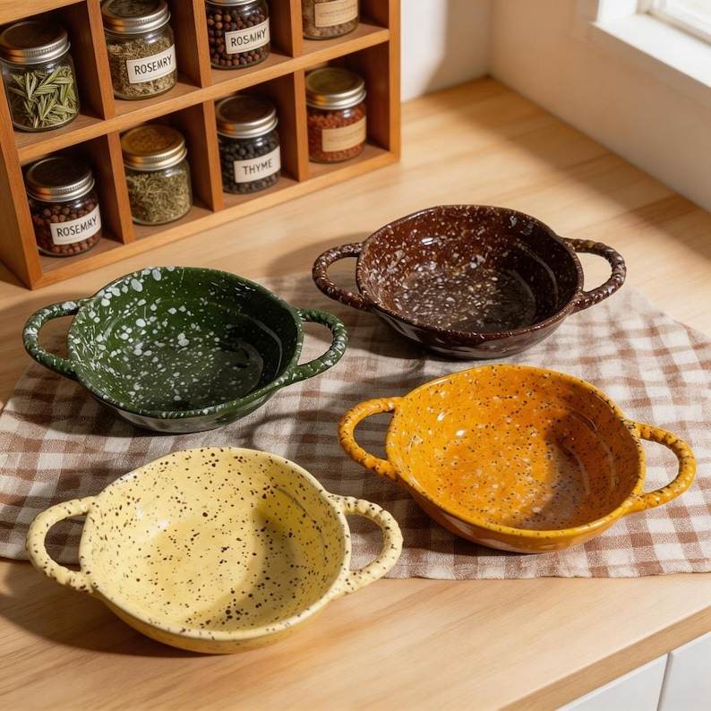 Tazón de Cerámica con Diseño Irregular Bajo Cubierta, Apto para Microondas, Ligero