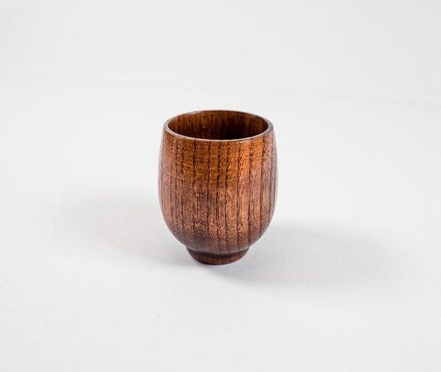 Vaso de Sake Redondo Personalizado Japonés Hecho a Mano con Madera de Haya Natural