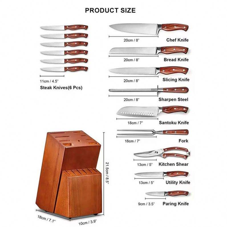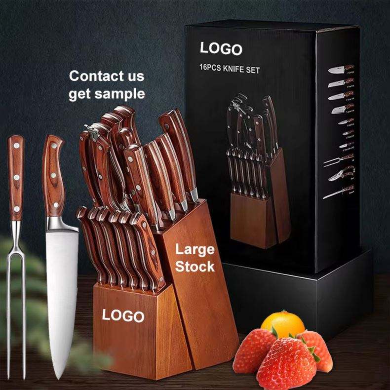 Juego de Cuchillos de Cocina Personalizados de 16 Piezas, Hoja de Acero Inoxidable Damasco Forjada, Cuchillos de Chef y Utilitarios con Bloque de Madera