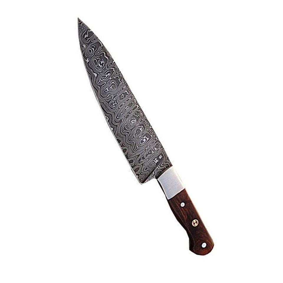 Cuchillo de chef de cocina personalizado con mango de acero, cuchillos de Damasco, mango de madera hecho a mano, precio más bajo, cuchillo de chef de tamaño personalizado