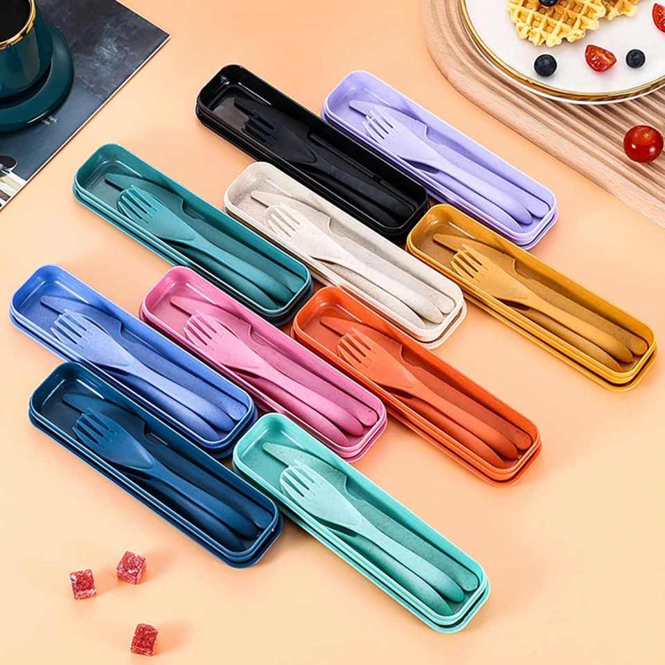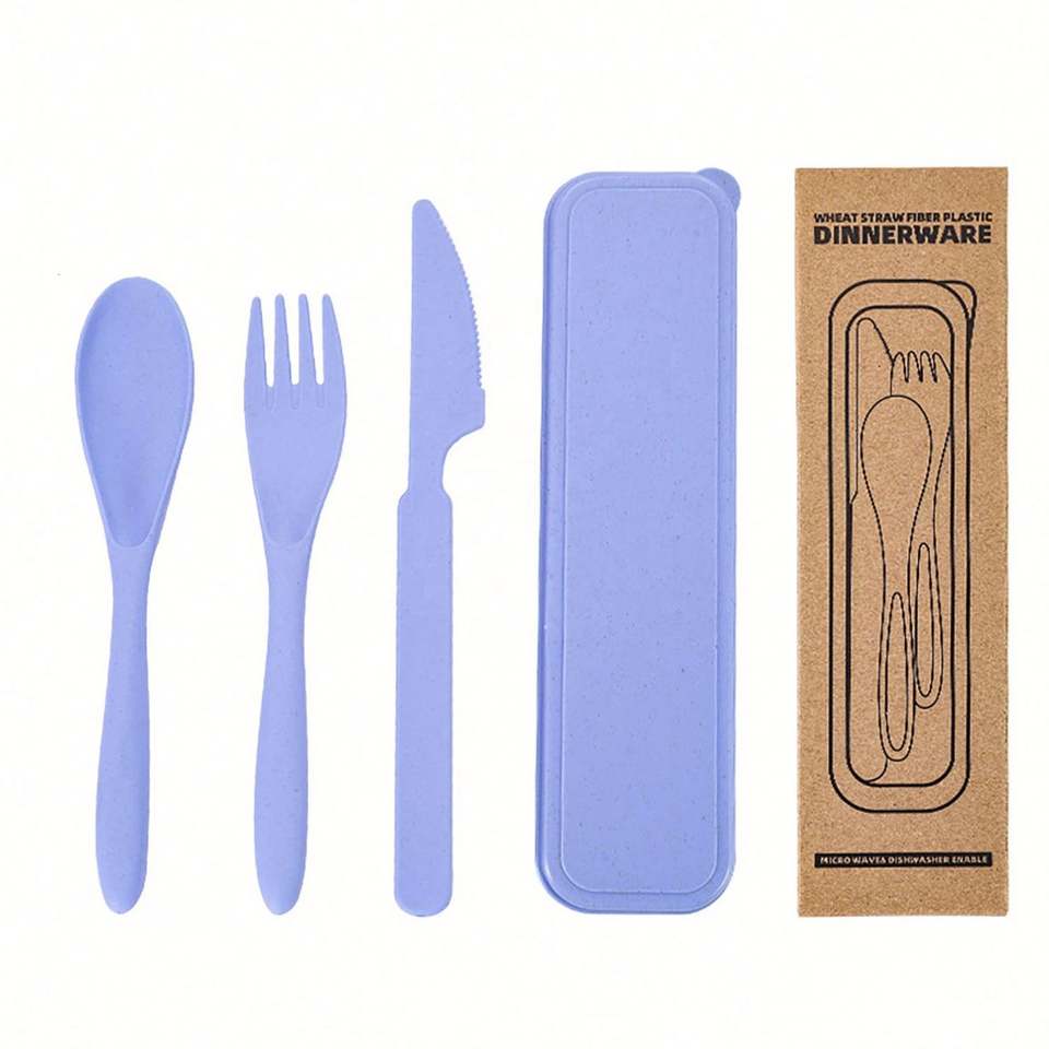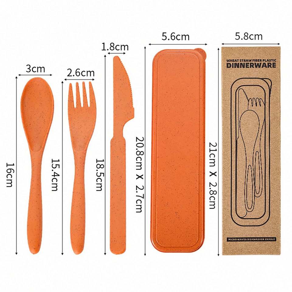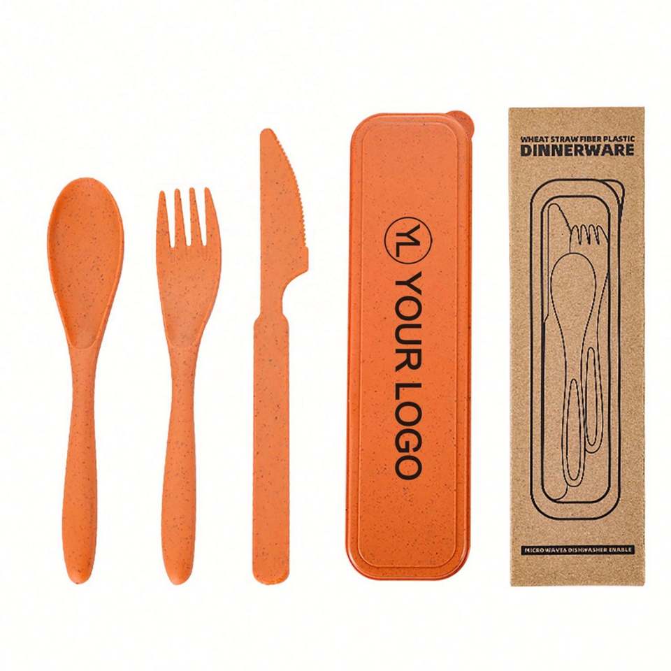 Juego de Cubiertos Personalizado con Logotipo, Ecológico, Escolar, Colorido, Ligero, de Paja de Trigo, Reutilizable, Biodegradable y Duradero, con Tenedor, Cuchillo y Cuchara