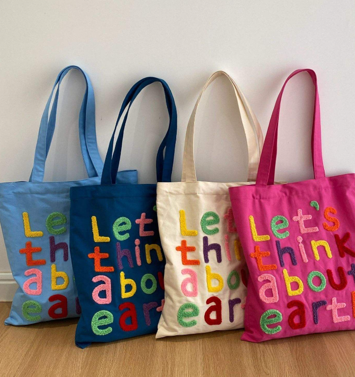 Bolsa de Lona Personalizada con Logotipo, de Moda, de un Solo Hombro, con Letra Bordada, Informal, de Gran Capacidad, para Compras