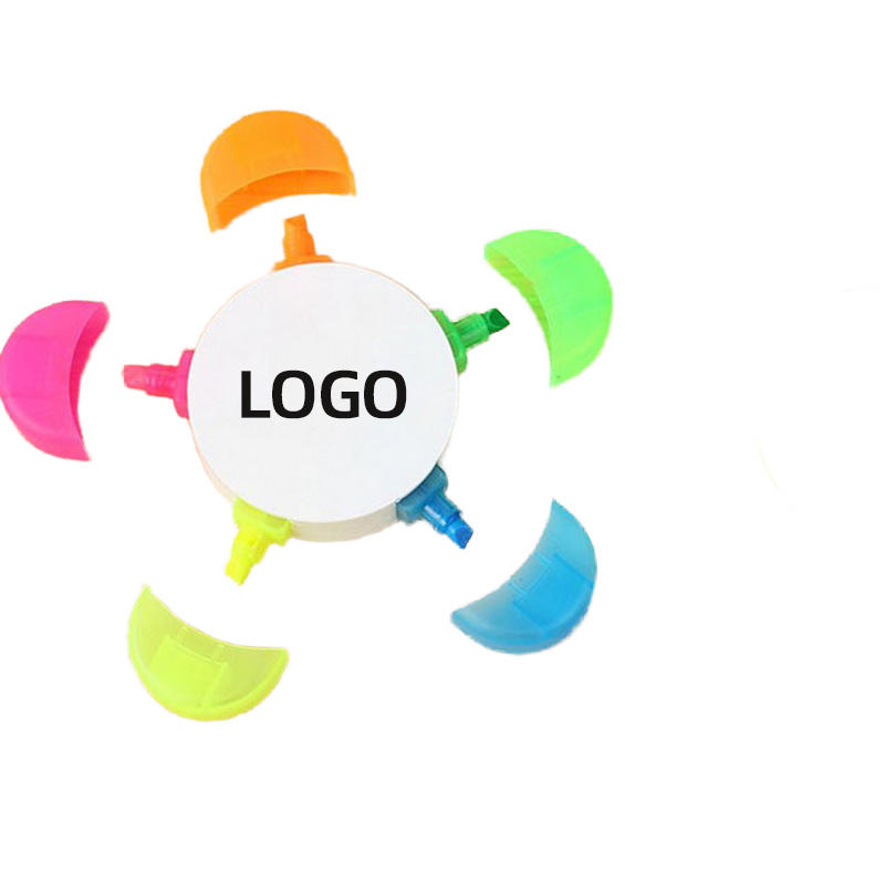 Rotulador resaltador en forma de flor de cinco colores con logotipo personalizado, papelería multicolor para uso escolar o regalos