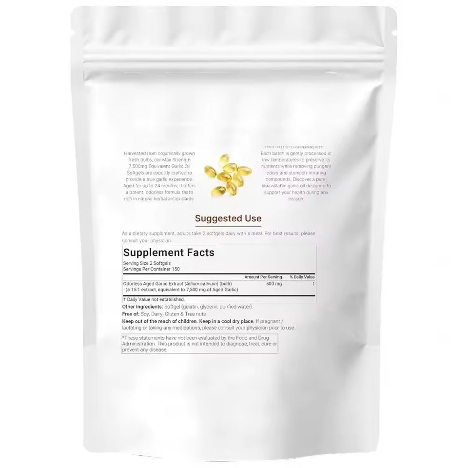 Cápsulas de Gel Suave de Aceite de Ajo Natural con Fórmula de Etiqueta Personalizada, Extracto de Ajo Envejecido, Sin Olor, para Adultos y Niños