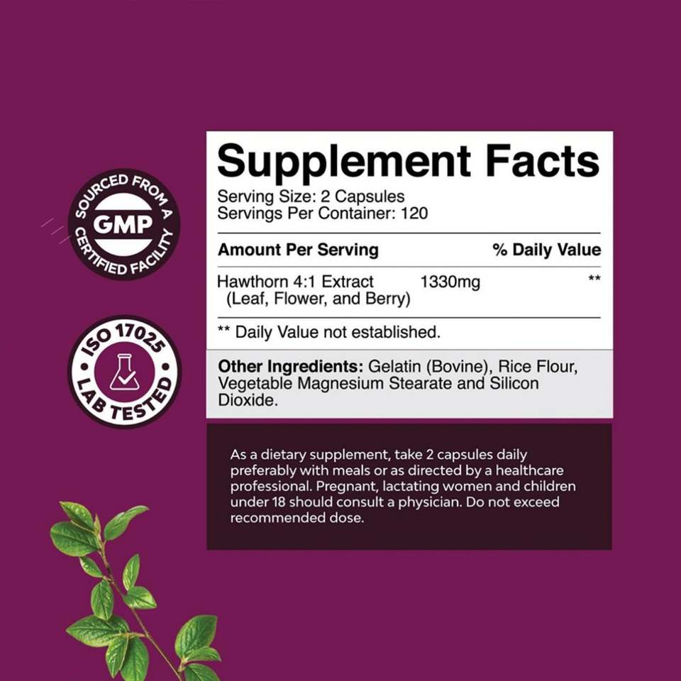 Etiqueta Personalizada, Complejo de Bayas de Espino, 120 Cápsulas, Apoyo a la Salud para Hombres y Mujeres, Extractos de Plantas del Complejo de Bayas de Espino