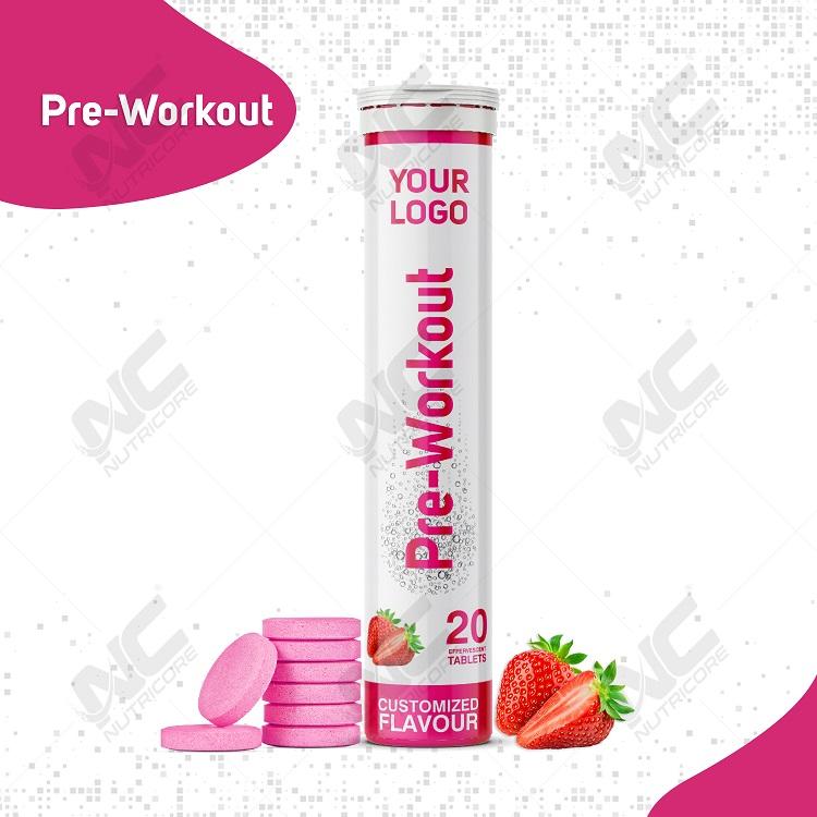 Tabletas efervescentes pre-entrenamiento de suplemento sanitario al por mayor de buena calidad etiquetado personalizado de proveedor indio
