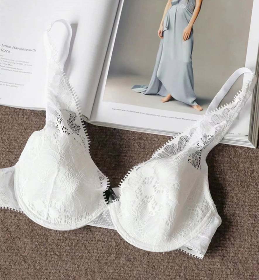 Sujetador francés personalizado para mujer, conjuntos de bragas ultrafinas para mujer, Bralette de 32 tallas, sin costuras, Sexy, transparente, Copa 3/4, bordado de encaje