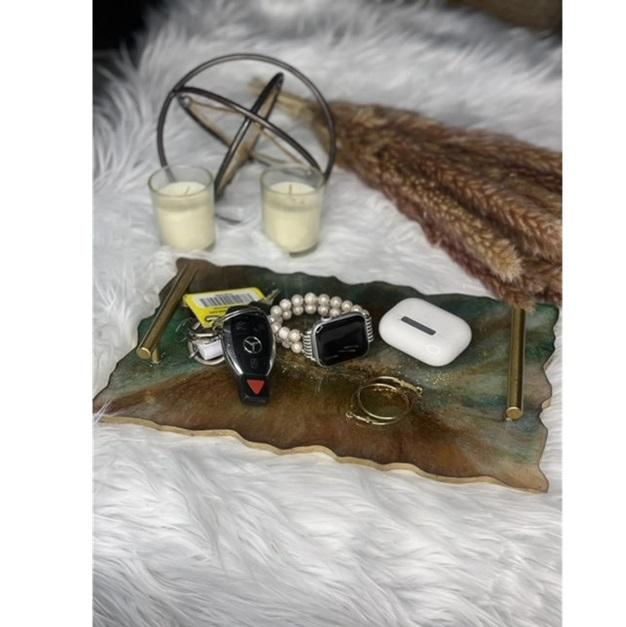 Bandeja de Servicio Grande Personalizada para Desayuno, Resina de Alta Calidad Hecha a Mano, Bordes Naturales, Diseño Elegante, para Servir Frutas en Acción de Gracias