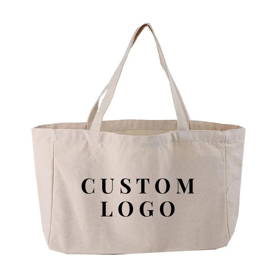 Bolsa de Lona Personalizada de Gran Capacidad, Bolsa de Compras de Lona, Bolsa de Algodón Orgánico Reutilizable con Logotipo Impreso Personalizado