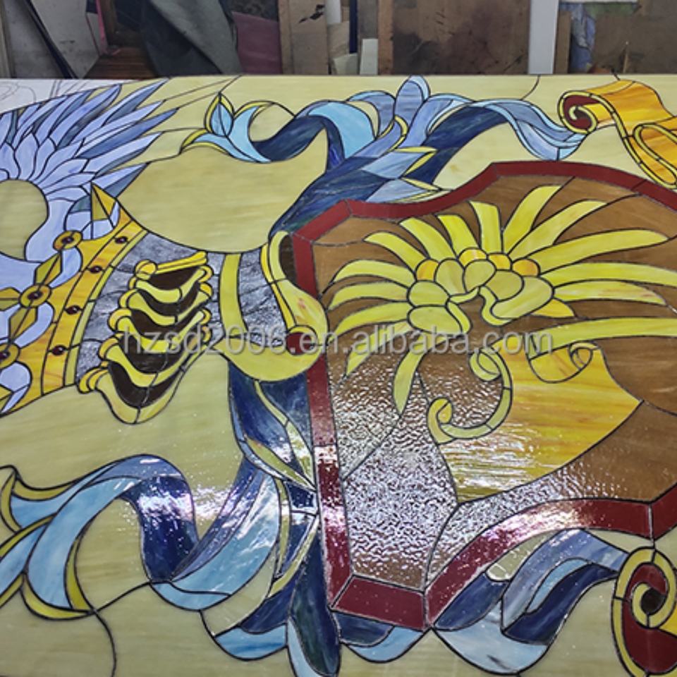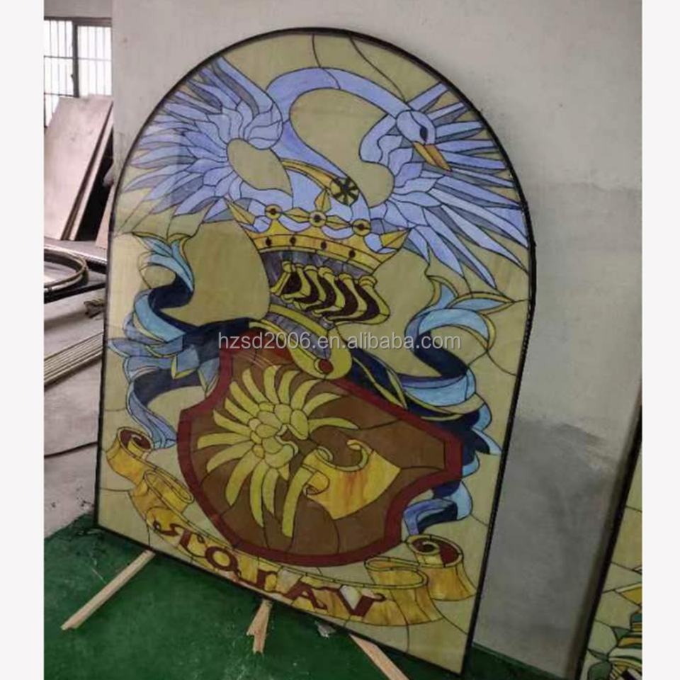 Vitralla Tiffany de gran tamaño personalizada con diseño de ángel de catedral, estructura sólida para muro cortina