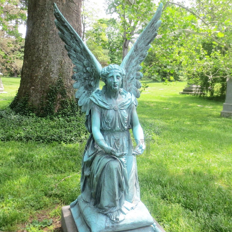 Estatua de bronce de tamaño real para dama triste y sentada personalizada, artesanía de Metal para escultura de cementerio al aire libre, técnica de fundición de Adorno