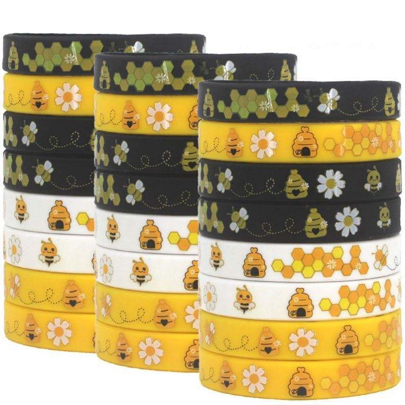 Pulsera de Silicona Personalizada con Diseño de Abejita Colorida, Estampado de Dibujos Animados, para Fiestas Temáticas, Joyería para Hombre y Mujer