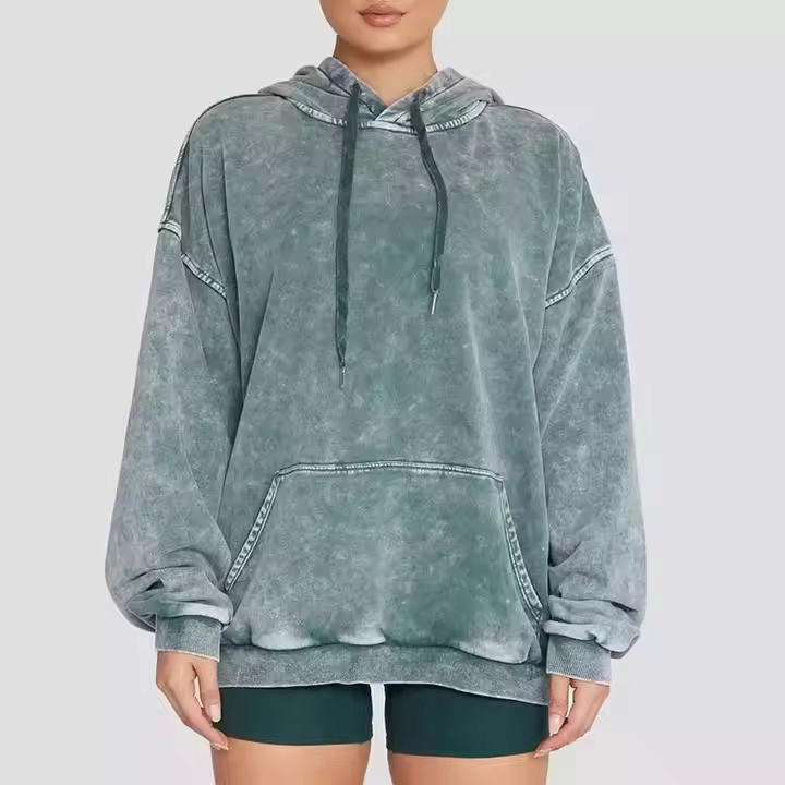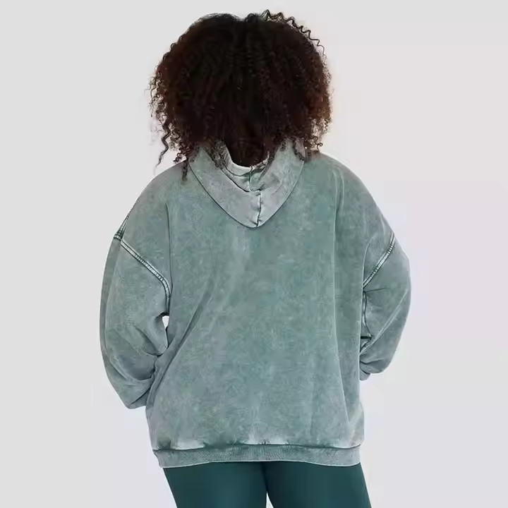 Sudadera con capucha de lavado ácido de nuevo diseño con logotipo personalizado 2025 para mujer de gran tamaño invierno liso teñido patrón sólido bajo MOQ poliéster/algodón