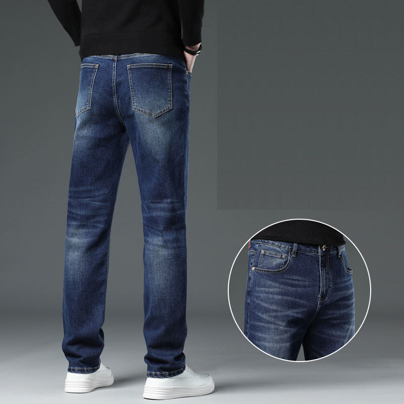 Pantalones vaqueros ajustados para hombre con logotipo personalizado, pantalones elásticos informales de alta sensación, transpirables, con patrón de retazos, ligeros, para primavera y verano 2025