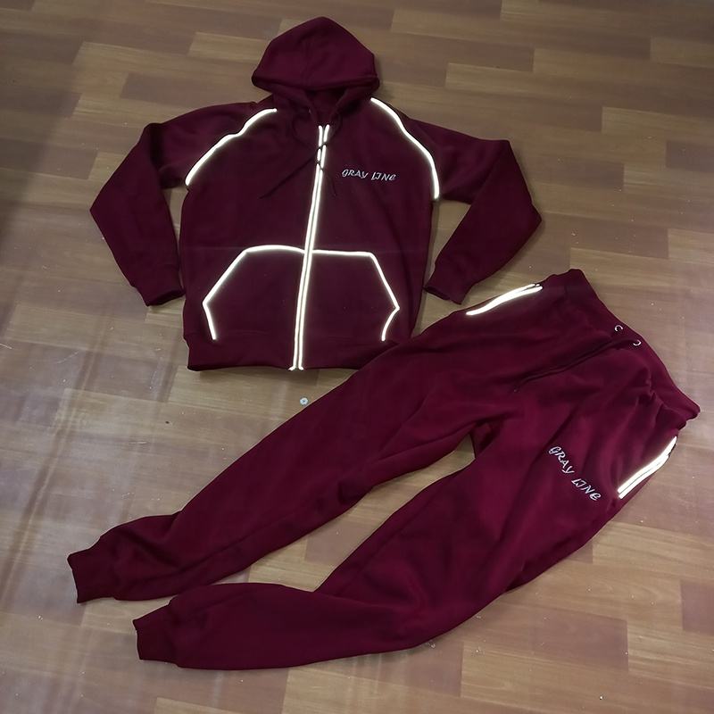 Conjuntos de Dos Piezas con Ribete Reflectante 3M y Logotipo Personalizado para Hombre, Conjuntos Deportivos Casuales, Sudadera con Capucha de Manga Larga, Ropa Deportiva Urbana