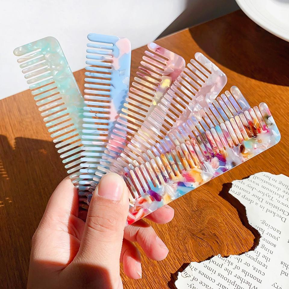 Peine de acetato con logotipo personalizado, peine de acetato Simple de estilo coreano a la moda, venta al por mayor, peine de dientes anchos antiestático para mujer