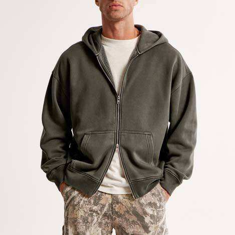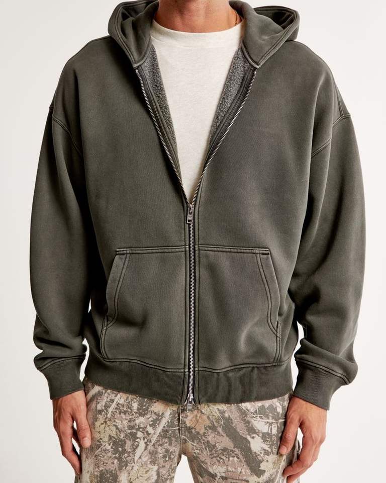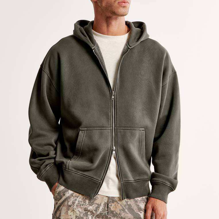 Sudaderas con capucha y cremallera para hombre, personalizadas con logotipo bordado, lavadas al ácido, unisex, de otoño, gruesas, cortas, de corte regular, de forro polar, impermeables