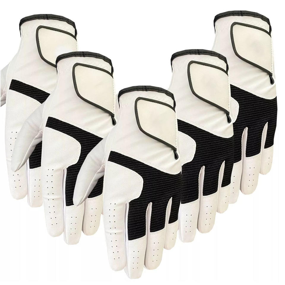 Guantes de golf para adultos con logotipo personalizado Cabretta de cuero sintético genuino, ropa deportiva transpirable, parche blanco, empuñaduras de palma para todos