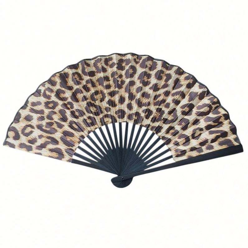 Abanico Plegable de Bambú con Logotipo Personalizado, Diseño Tradicional con Estampado de Leopardo, Pintado con Sublimación para Bodas y Baile
