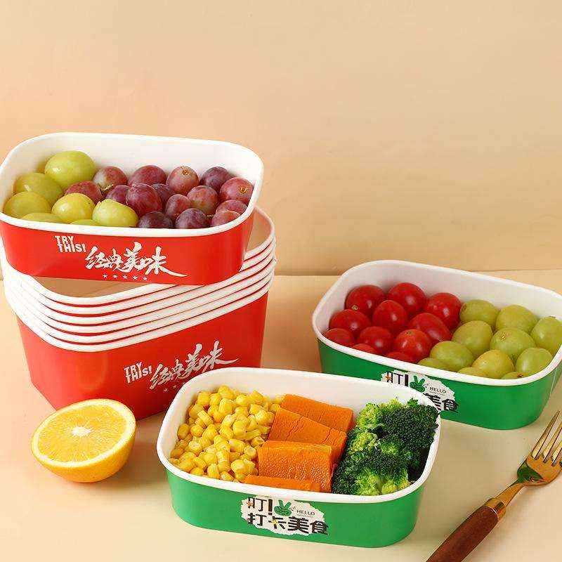 Ensaladeras de papel rectangulares compostables desechables biodegradables con logotipo personalizado para restaurante