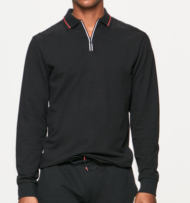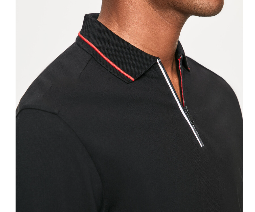 Polo de manga larga de algodón y poliéster negro con logotipo personalizado para hombre