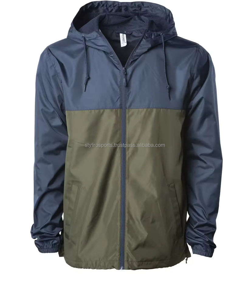 Chaqueta Cortavientos con Capucha y Cremallera Completa, Ligera, Impermeable, para Invierno, con Bloques de Color, Personalizable con Logotipo Bordado en la Parte Delantera, Unisex para Hombre