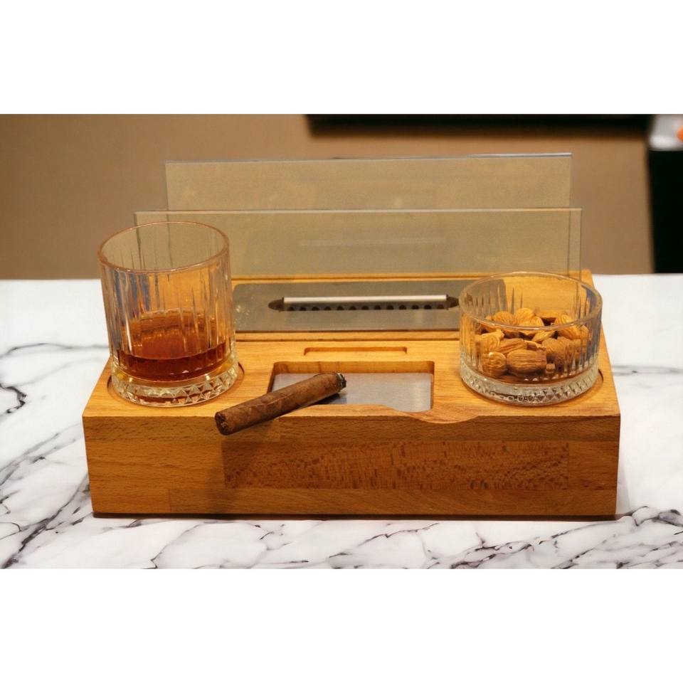 Cenicero de Cigarros Brushstroke Bliss con Logotipo Personalizado, Diseño Clásico, Decoración para el Hogar, de Vidrio y Madera, Multiusos, Entrega Rápida