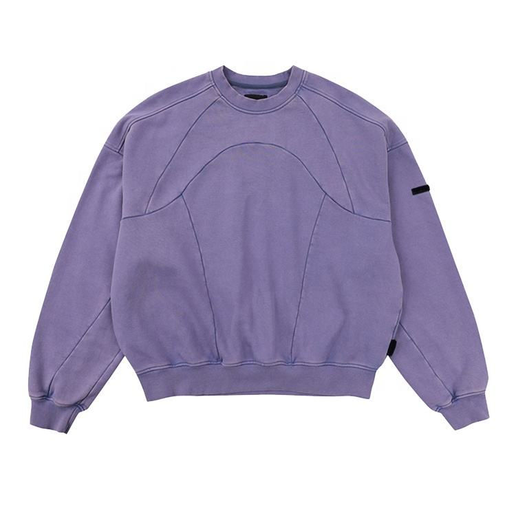 Suéter de cuello redondo con logotipo personalizado Unisex y cómodo hombro caído pesado Vintage ácido lavado Patchwork sudadera de hombre