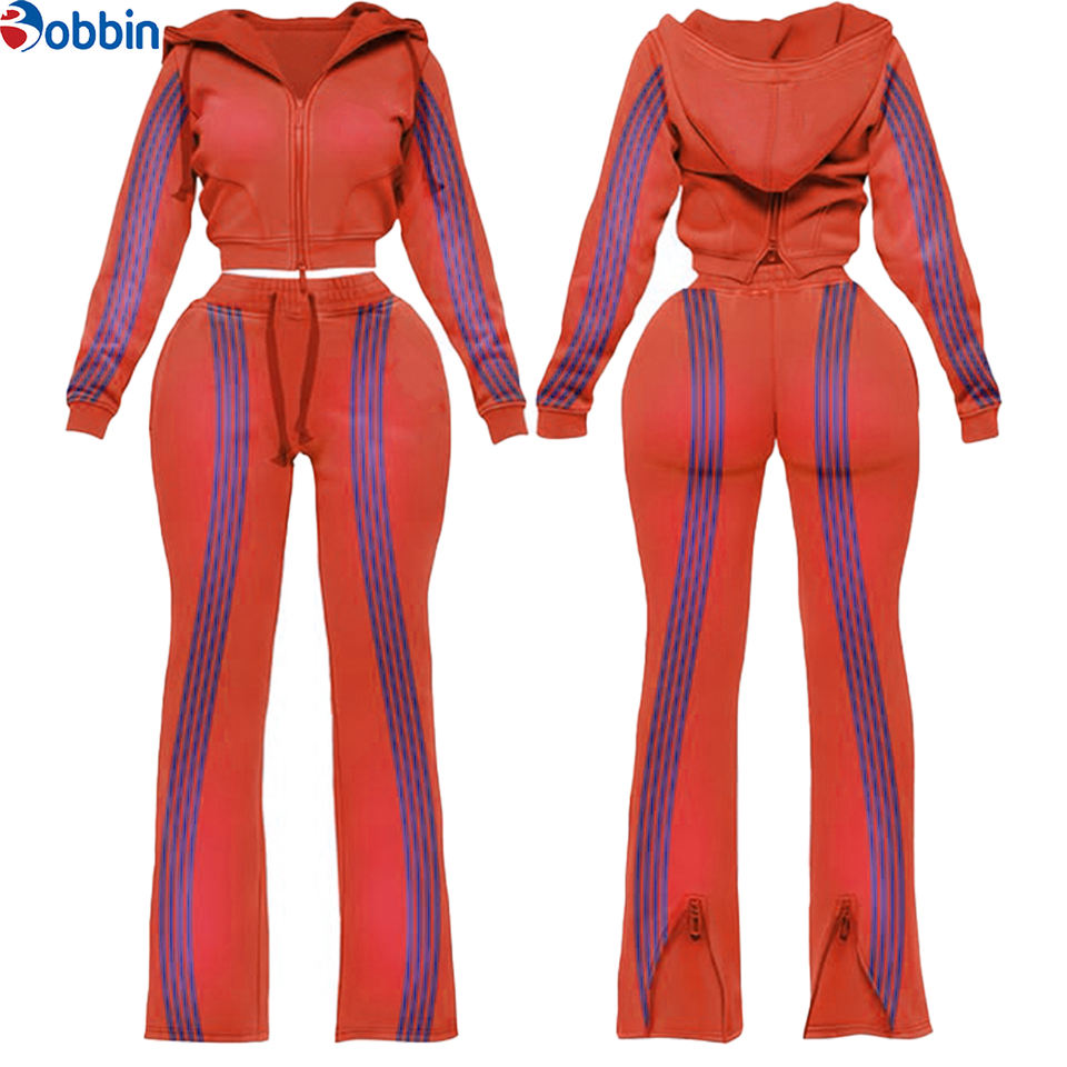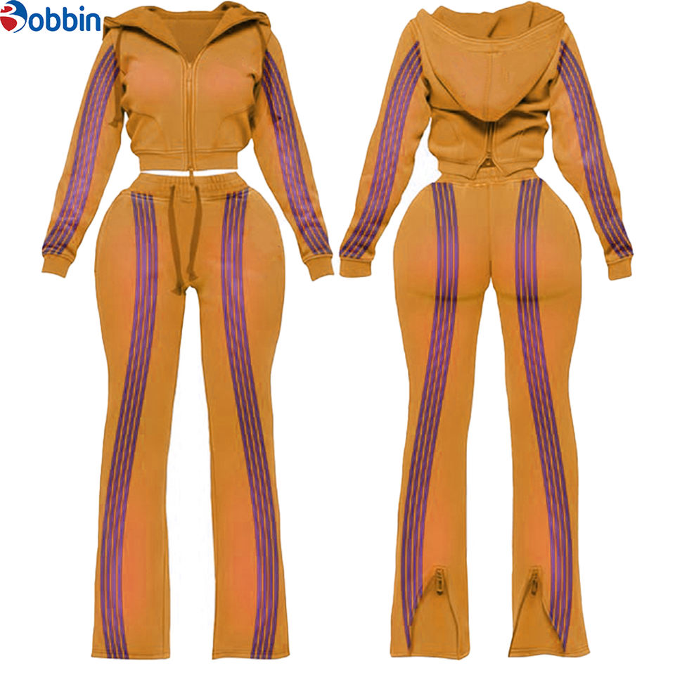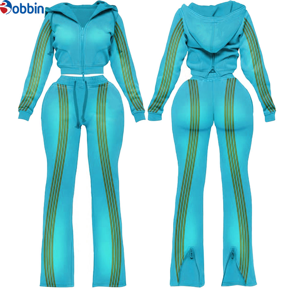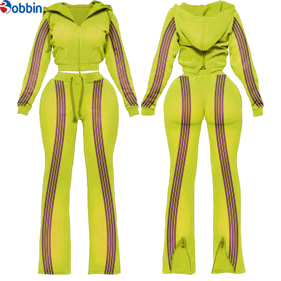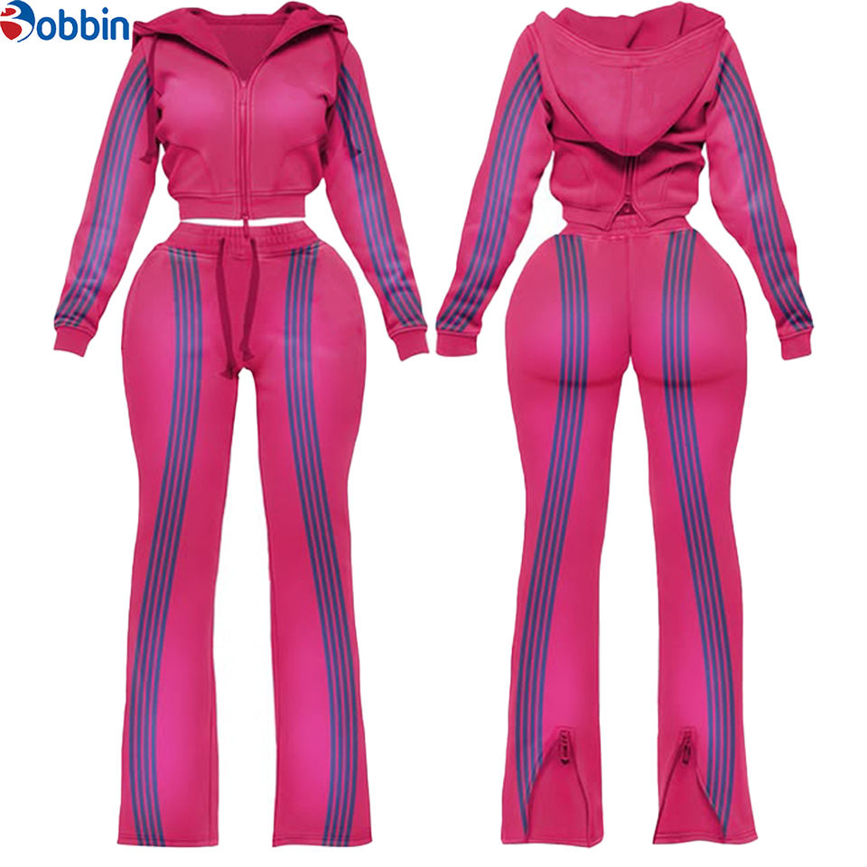 Conjunto de Sudadera con Capucha y Cremallera con Franja Lateral en Contraste y Logotipo Personalizado para Mujer, Pantalones Acampanados, Ropa Deportiva, Conjunto de Sudadera con Capucha, Ropa Urbana