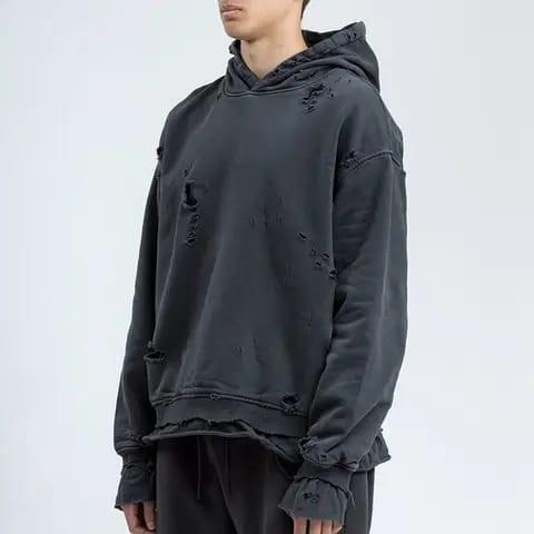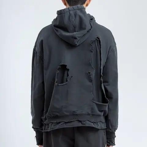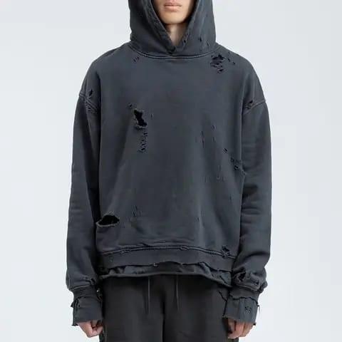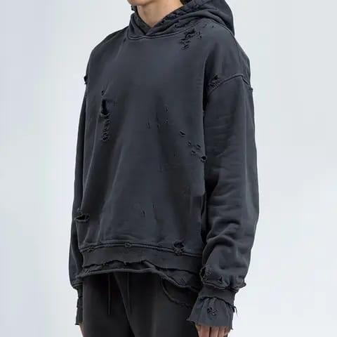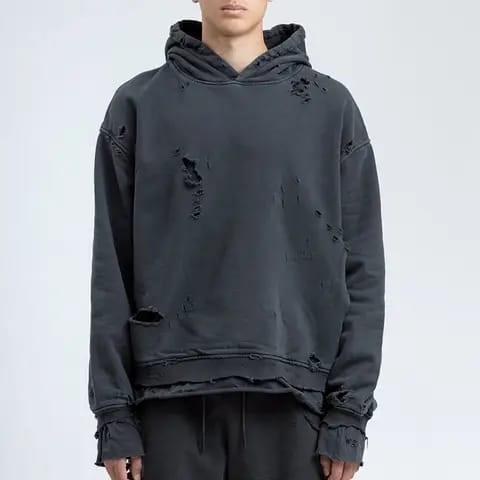 Sudadera con capucha con estampado de logotipo DTG personalizado Sun Faded Vintage Distressed Cuff Pullover Streetwear Sudadera con capucha para hombre