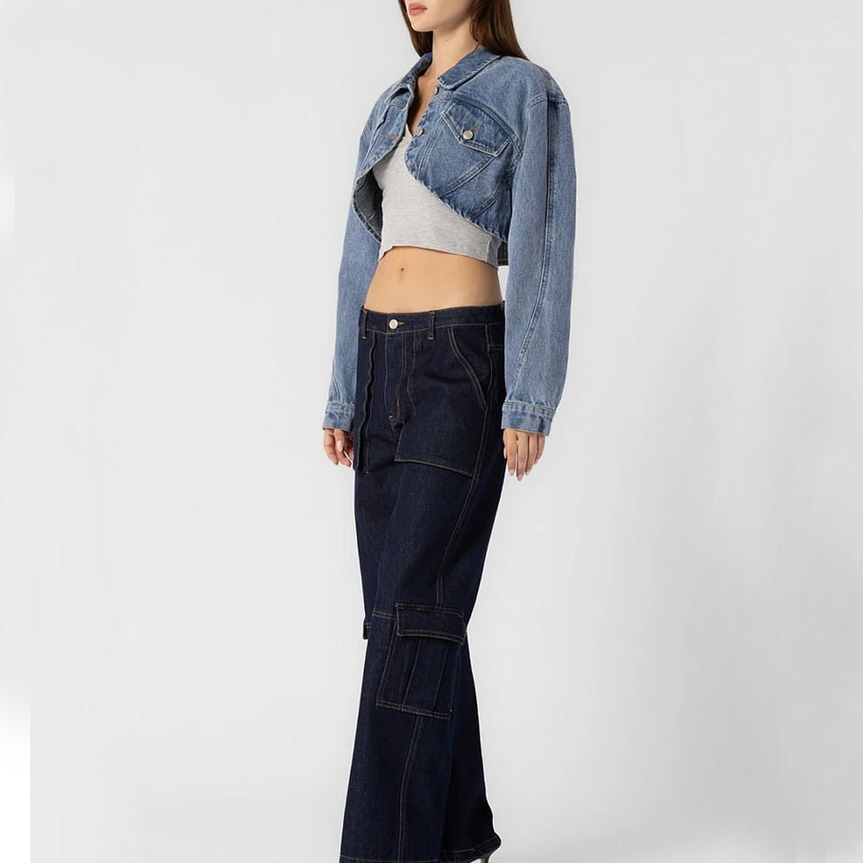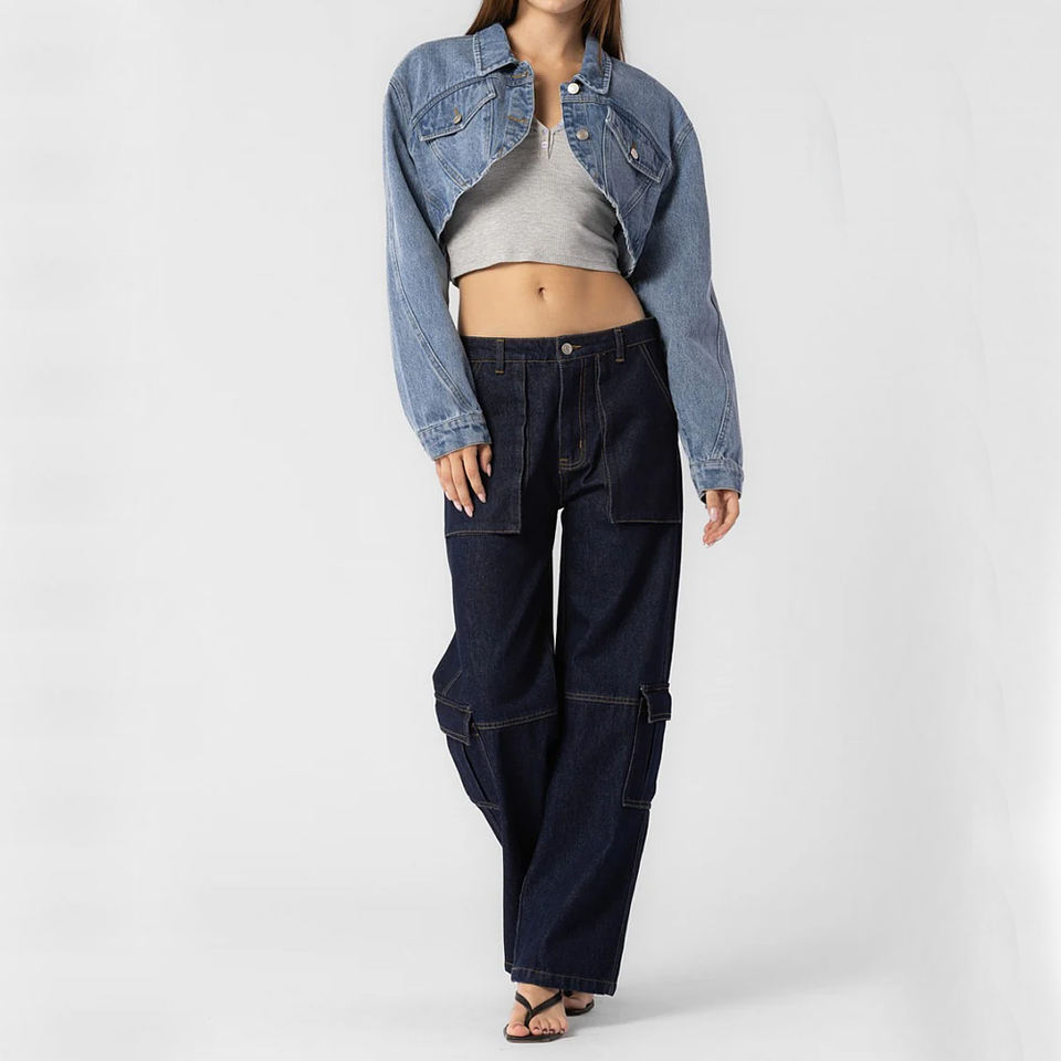 Chaqueta vaquera corta transpirable con logotipo personalizado para mujer, superventas, chaqueta vaquera recortada de marca personalizada para mujer para invierno informal
