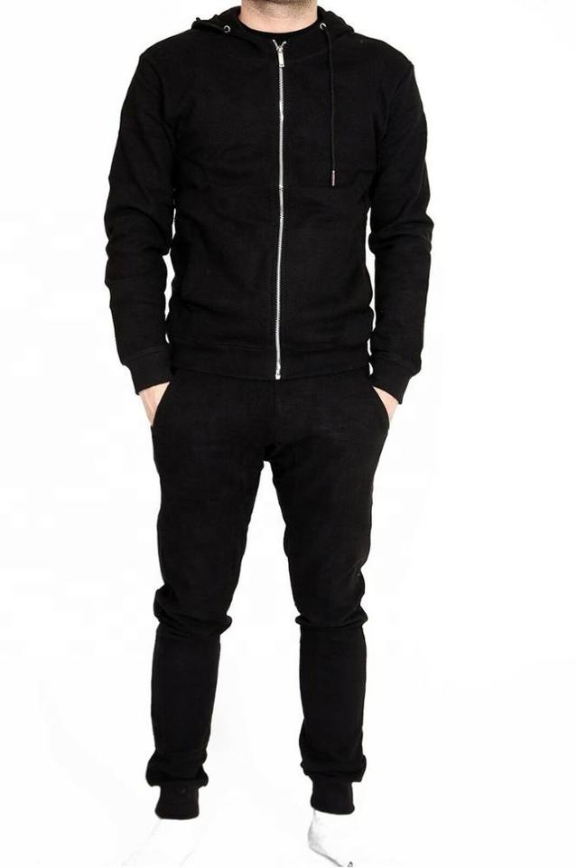 Diseño de logotipo personalizado de alta calidad para hombre, chándales de manga larga, precio barato, ropa de invierno informal, chándal de algodón con cremallera negra para hombre