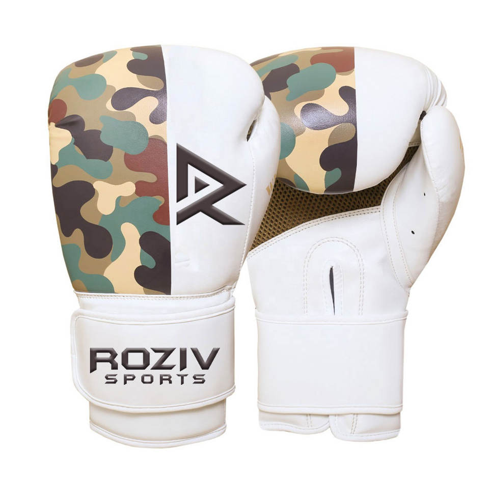 Guantes de Boxeo de Cuero Roziv Sports con Diseño de Logotipo Personalizado, Profesionales, Resistentes, con Correa de Muñeca Ajustable, Antideslizantes y con Protección UV