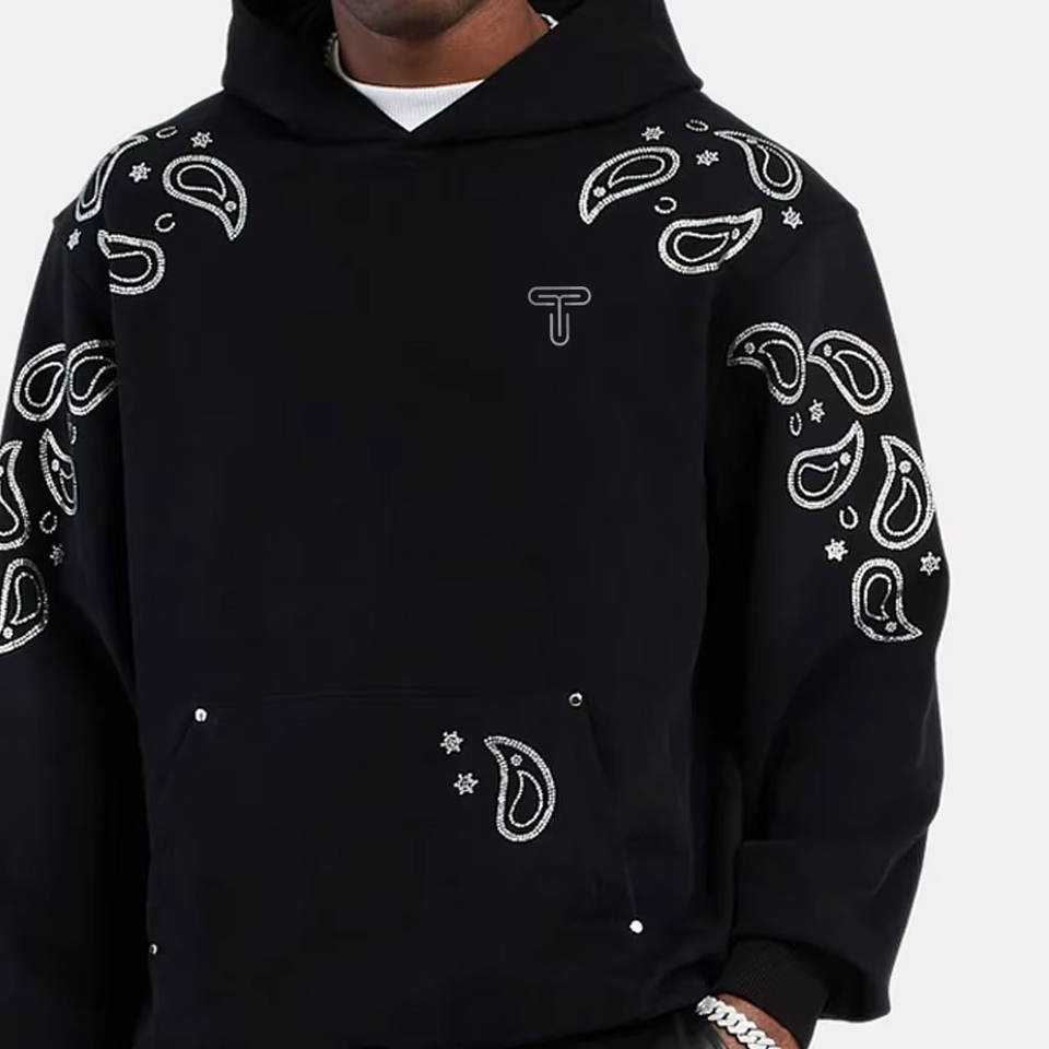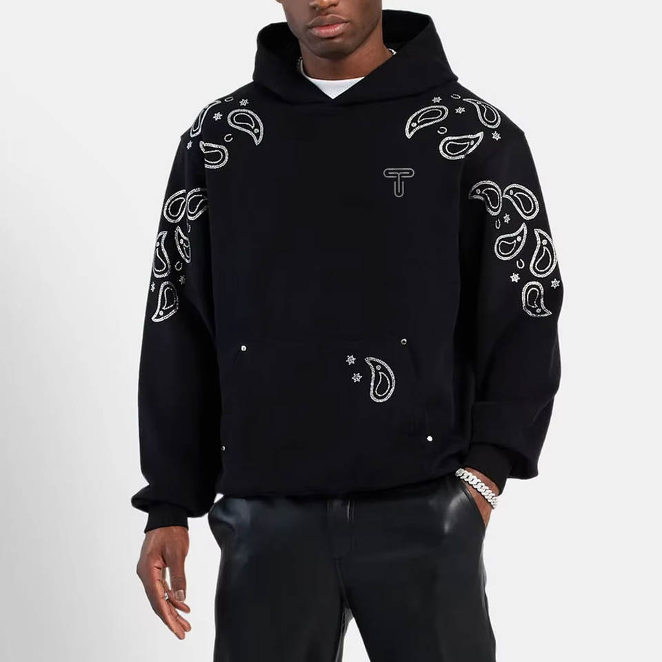 Sudaderas con Capucha Extra Grandes de Felpa para Hombre, Transpirables, 100% Algodón, con Logotipo y Diseño Personalizados, con Pedrería, Hechas en Pakistán