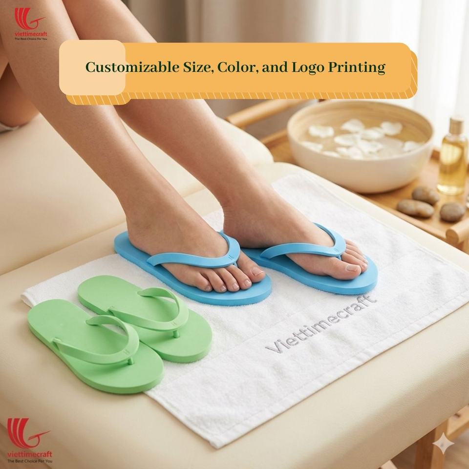 Pantuflas de espuma desechables con logo personalizado, sandalias de pedicura multicolor de un solo uso para spa, salón de uñas, centro de bienestar