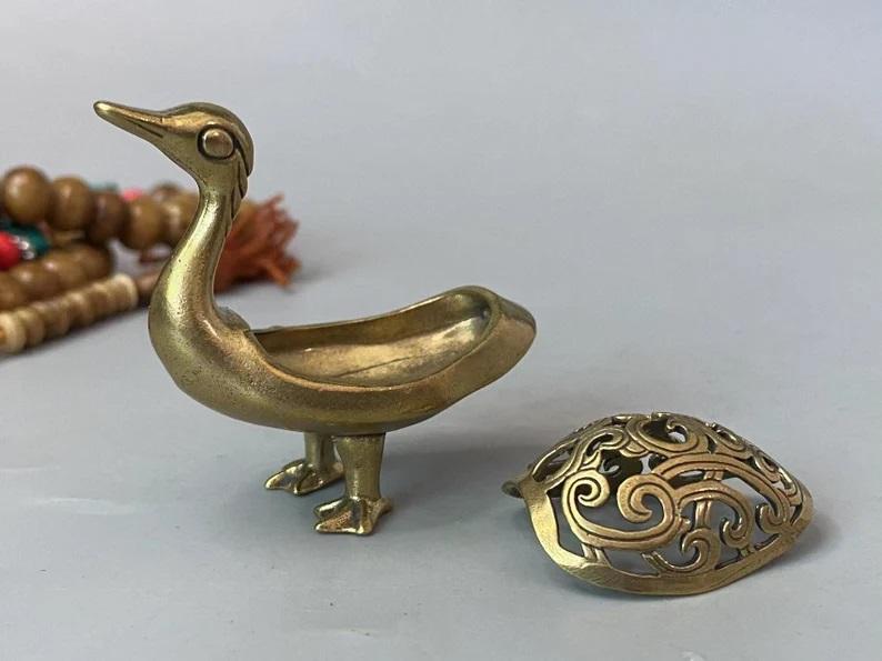 Quemador de incienso de carbón de latón y metal con forma de pato y logotipo personalizado para fines religiosos, quemador de incienso de fragancia de aire para oficina en casa