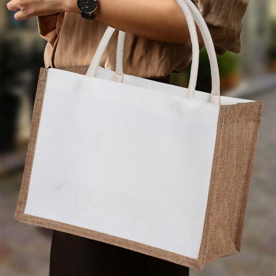 Bolsa de Compras de Lino y Yute Ecológica con Logotipo Personalizado, Bolsa de Mano de Yute con Costuras de Color, Bolsa de Mano de Yute en Blanco para Publicidad