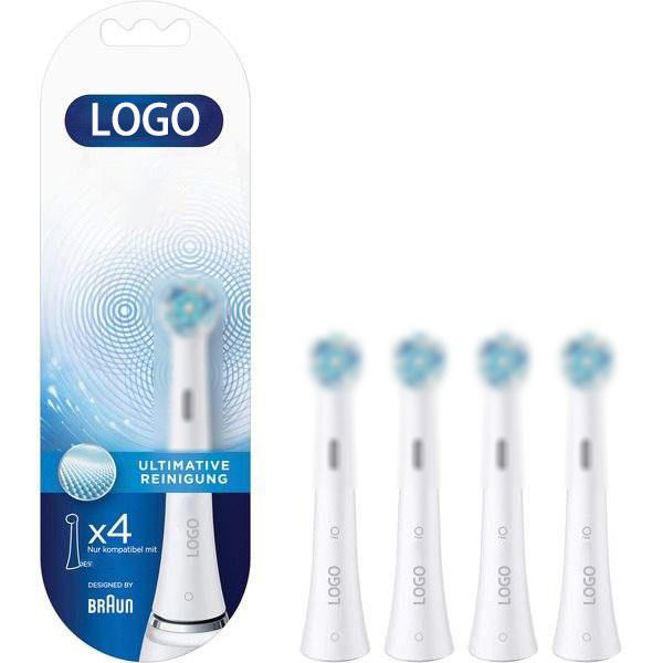 Cepillo de dientes eléctrico con logotipo personalizado, con accesorios blancos y negros iO, paquete de 4 para uso adulto, para exteriores y hoteles