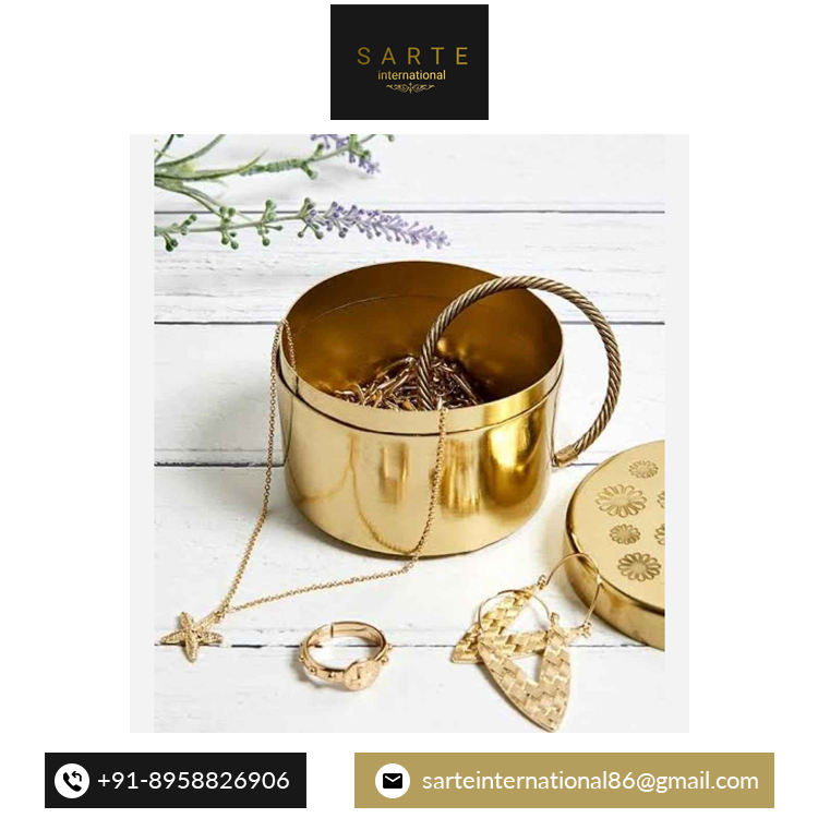 Caja de Almacenamiento de Joyería de Metal de Latón Grabada a Mano con Diseño Elegante y Moderno con Logotipo Personalizado para Anillos, Pulseras, Colgantes y Collares