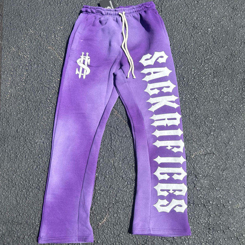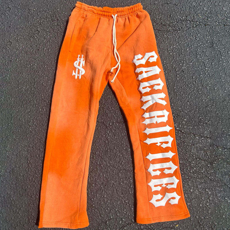 Pantalones de chándal acampanados con logotipo personalizado para hombre, pantalones de chándal con cordón acampanado informal Vintage