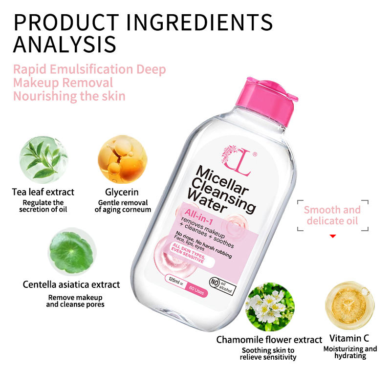 Agua Micelar Limpiadora Suave con Logotipo Personalizado, Limpiador Facial Hidratante, Desmaquillante con Vitamina C, Vegano, Libre de Crueldad