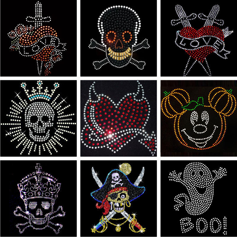 Logotipo personalizado Transferencia de calor Hotfix Rhinestones Venta al por mayor Diseño de Halloween Transferencia de diamantes de imitación con parte posterior plana para ropa