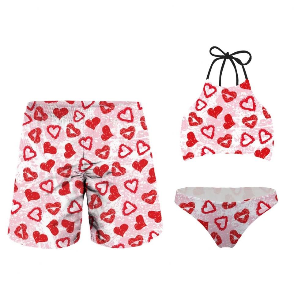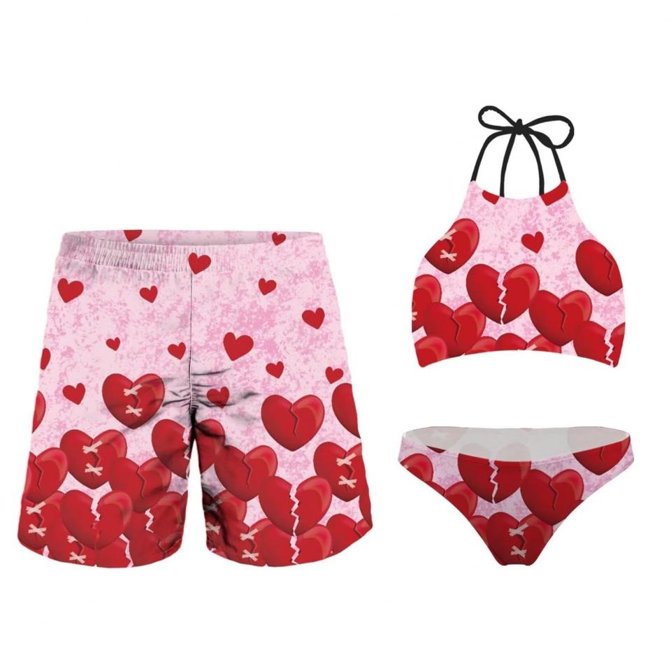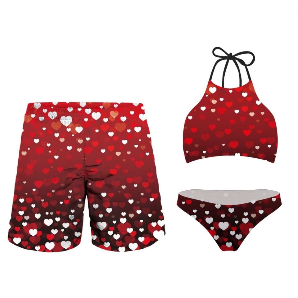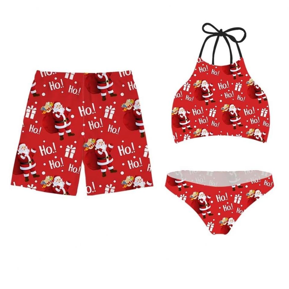 Traje de Baño Personalizado con Logotipo de Alta Calidad, Estampado Navideño de Santa Claus, Conjunto de 3 Piezas para Parejas, Bikini, Ropa de Playa para Mujer